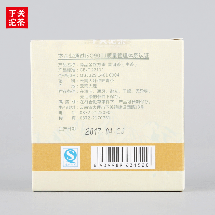 100克紙盒裝尚品金絲方茶 普洱茶(生茶)2017